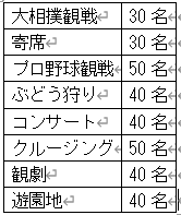 まずは、上の一覧をWordに入力します。 1行ずつ、イベント名と人数を並べて書きましょう。
