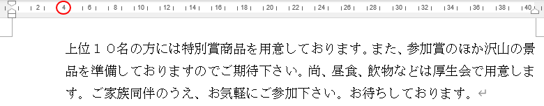 文章全体を範囲指定して、1行目インデントを「4」までドラック