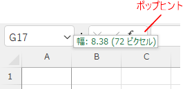 💡 現在の幅・高さを確認するには? 境界線上でマウスを押したままにすると、ポップヒントで現在の列幅(または行の高さ)の数値を確認できます。