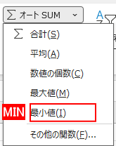 - 「最も小さい値」= MIN
