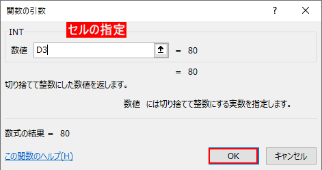 セル I2 に、D2 の値を 整数部分だけ表示(INT) しなさい。