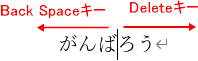- カーソルよりも左側の文字を削除したい時はBack spaceキーを使います。